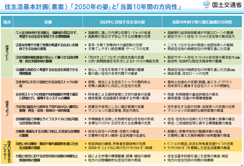 国土交通省は、11月26日、社会資本整備審議会住宅宅地分科会で住生活基本計画(全国計画素案)を発表しました。