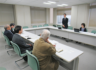 | 東京都住宅政策本部と交渉する住宅団体の代表(手前) |