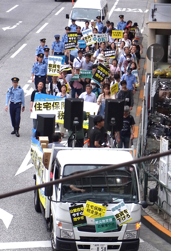 そこで、住宅運動団体と労働組合等が協力し、政府や東京都に対しても声を上げようと「家賃高過ぎ何とかしろ!」デモを3月14日(土)13時45分に新宿駅東口旧アルタ前に集合実施する。住宅問題に関心のある方はデモに参加し、抗議の声を上げよう。