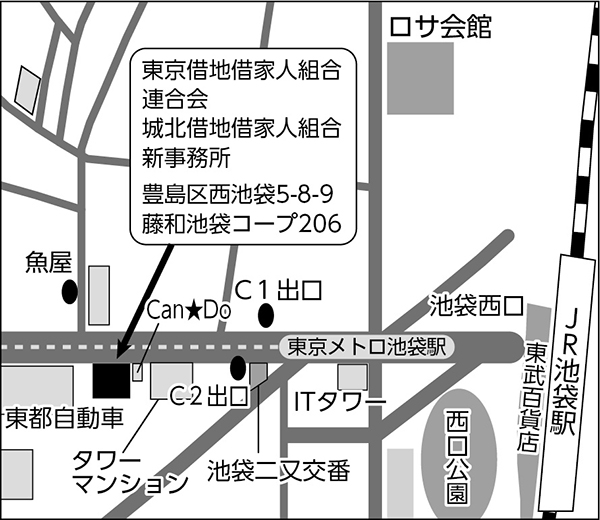 東京借地借家人組合連合会と城北借地借家人組合は2月末日をもって事務所を移転した。(上記地図)